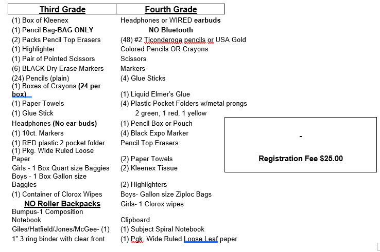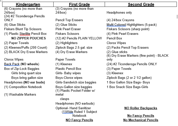 K-4 School Supply Lists