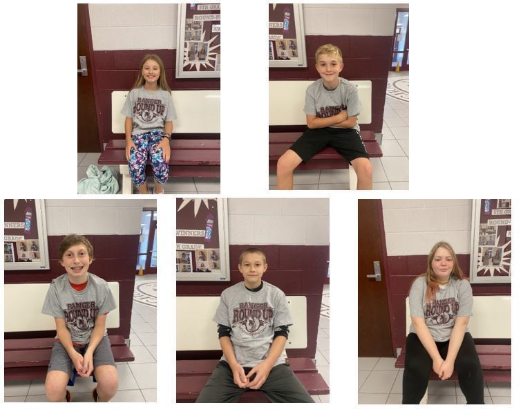 The Benton Grade School Ranger Round Up winners for the month of August are: 5th Grade: Lydia Davis, 6th Grade: Zayden McCain, 7th Grade: Jakeb Rush, and 8th Grade: Maeson Worley and Presley Collins.